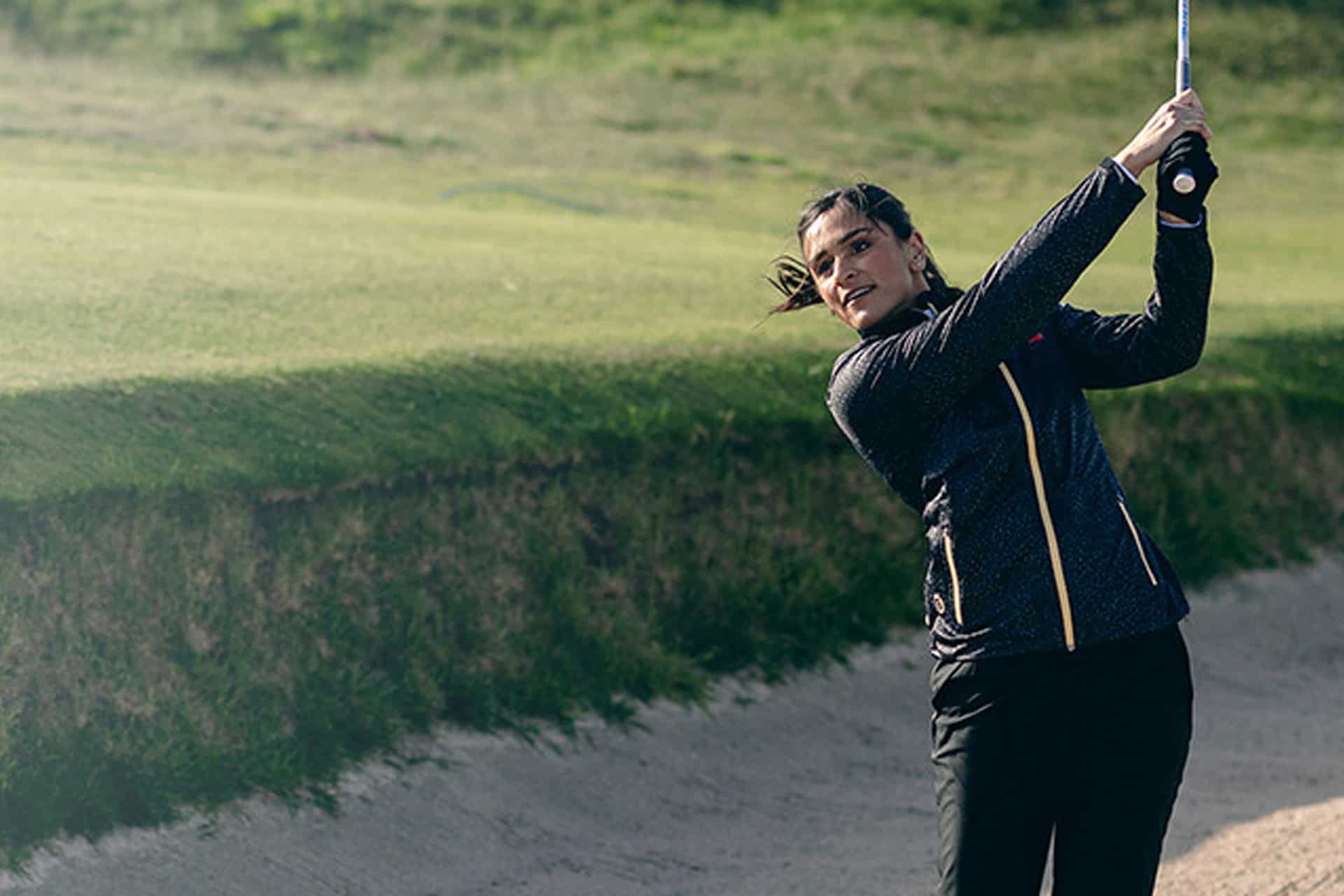 The brushed fleece backing and teflon coated water repellent finish means you can stay warm and protected from both wind and rain on those early morning tee times, all whilst still remaining breathable. The contour seams provide feminine shaping and the 4 ways stretch jersey means you get a flattering fabric which moves with you all day long.