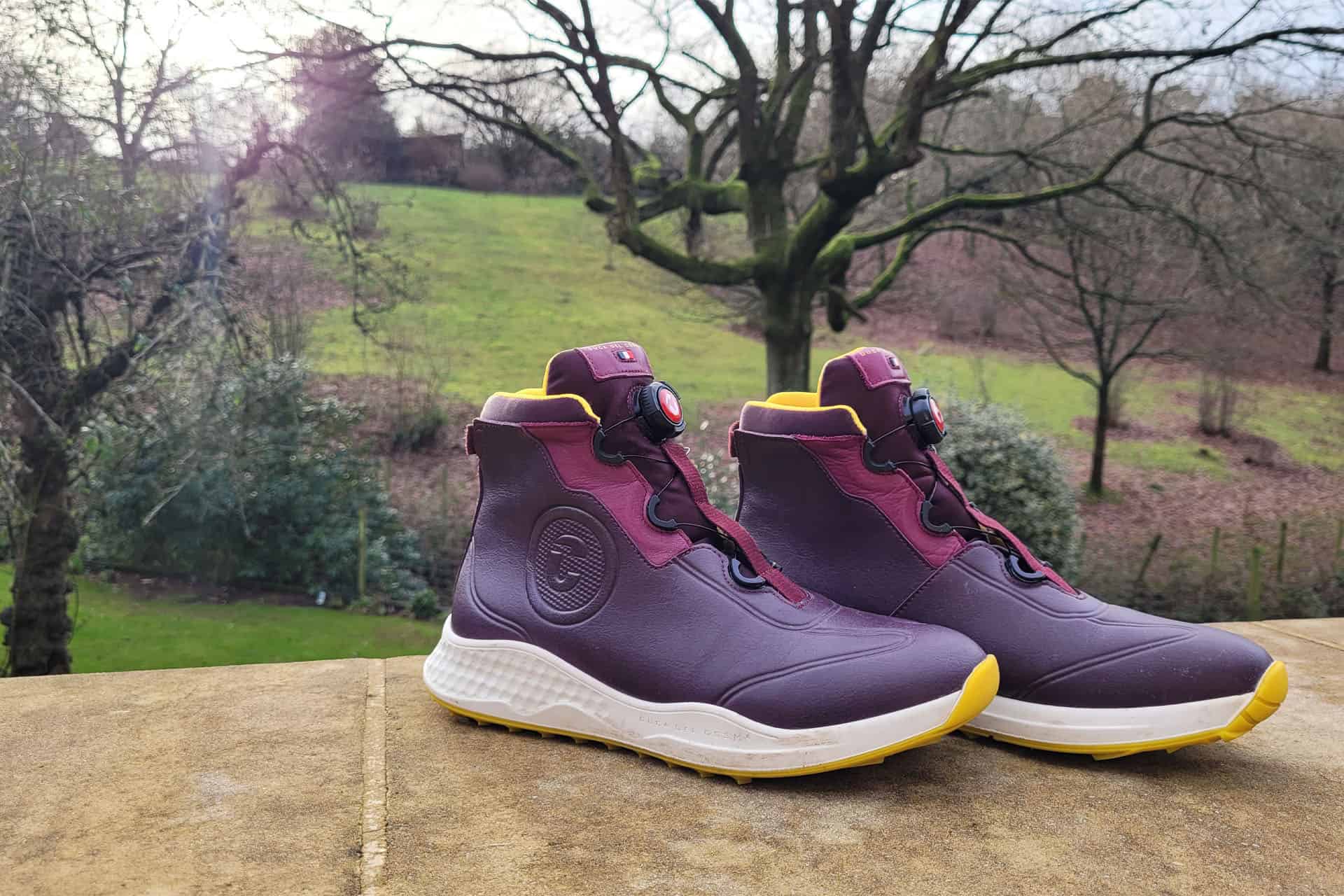 Ahead of the wet winter, I was sent a pair of the new Duca del Cosma Toscana winter golf boots in purple to test out. They really couldn’t have arrived at a better time as we moved from dried-out to wet and muddy fairways.