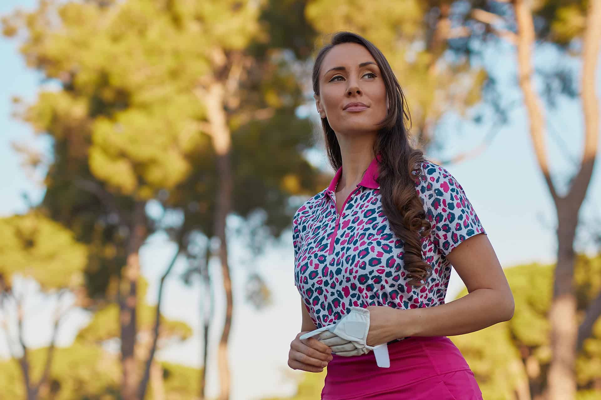 Co-ordinates continue to grow in popularity and if you want a great selection you should check out Pure Golf’s super set of co-ordinates this season. Whether you love animal print, indigo blue or serene aqua prints, you can combine tops, dresses and skorts in full print or pops of pattern, to your heart’s content and at a price point you’ll love.