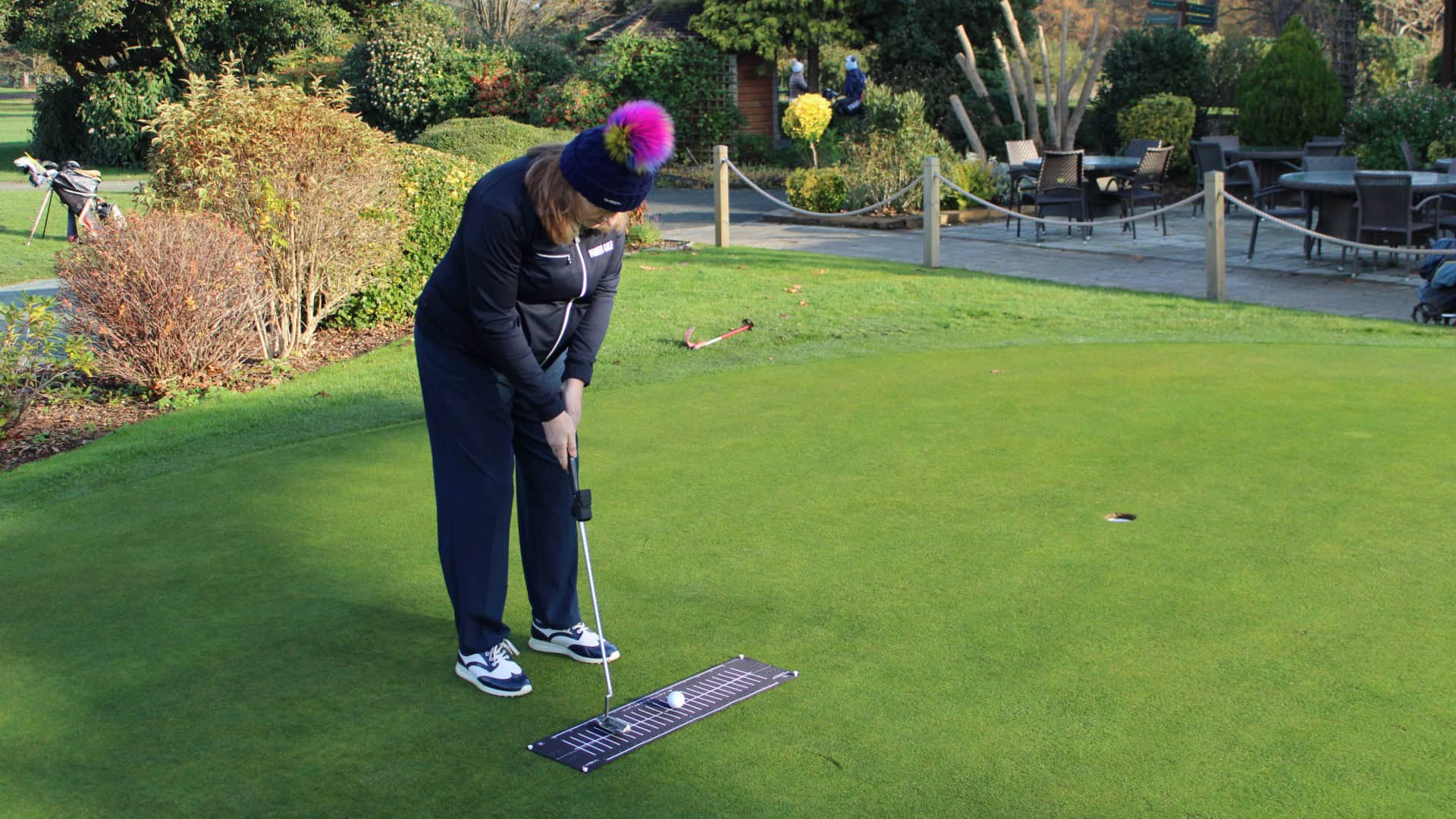 A quick fix with the putting matt and some strategically placed tee pegs allowed me to change the direction of my path angle of my putter.