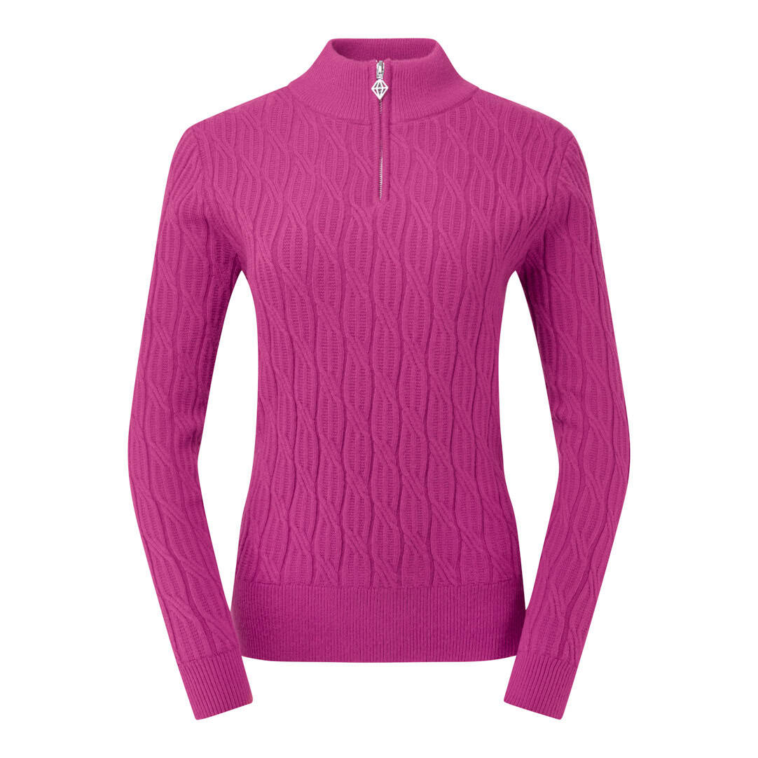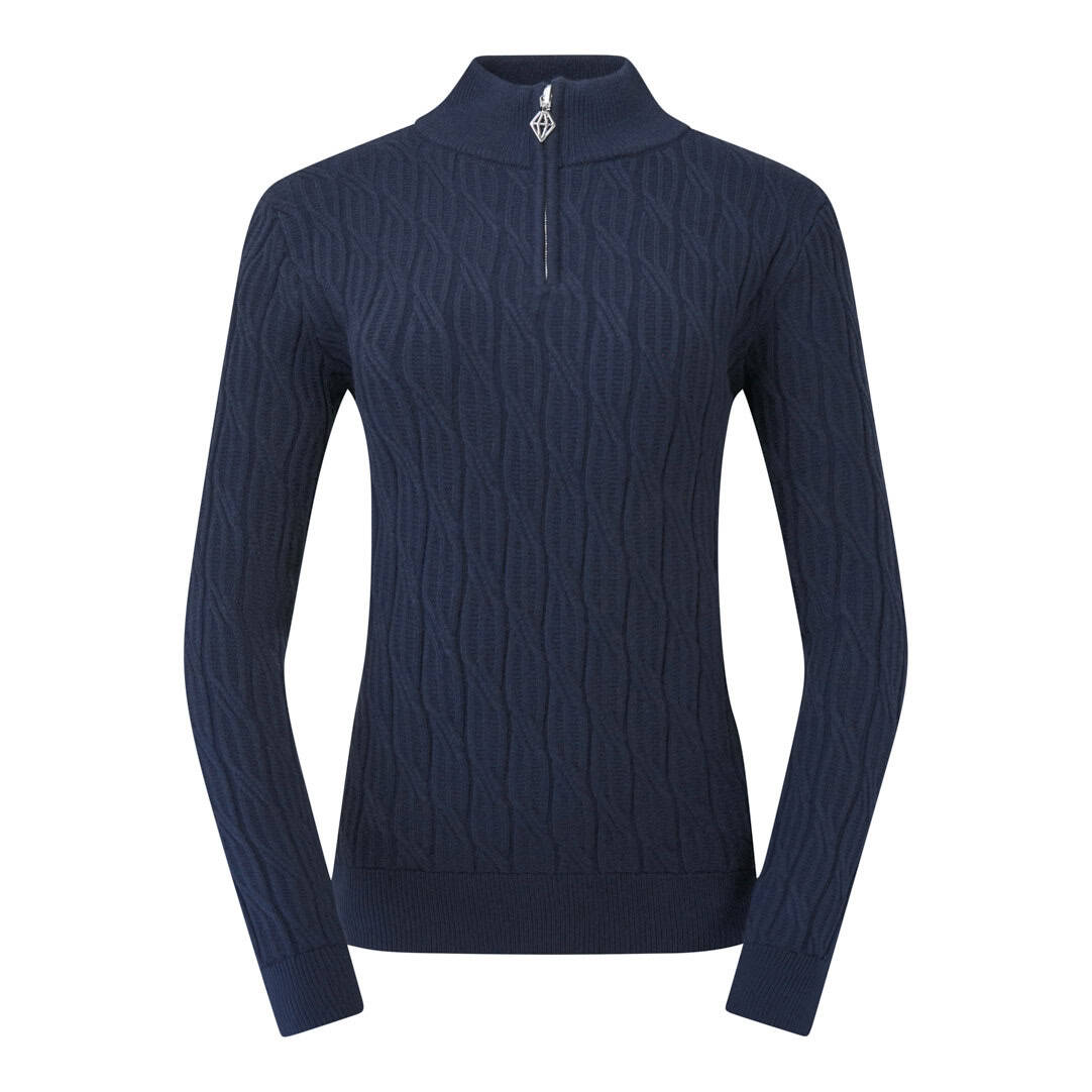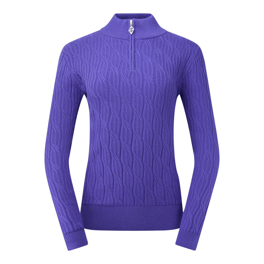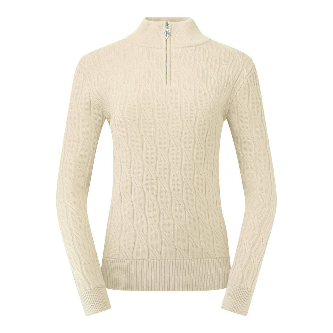 A beautifully crafted quarter-zip jumper designed for warmth, comfort, and timeless style on cooler golf days. Made with a soft cable-knit construction and a fully lined interior, it delivers cosy insulation while maintaining a breathable, easy-to-wear feel. The anti-static finish helps reduce cling, and the regular fit creates a flattering silhouette. Perfect for pairing with Pure Golf prints for a polished, coordinated look on and off the course.
